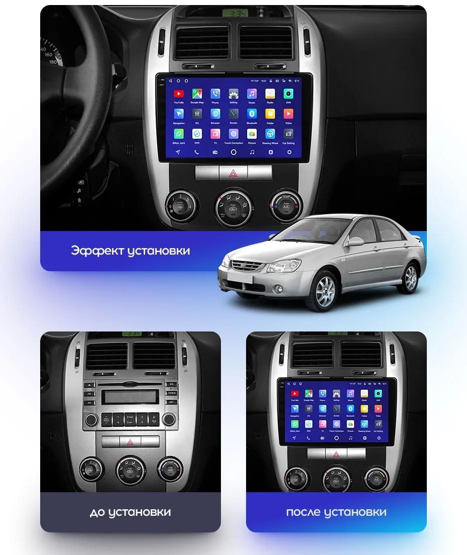Магнитола для KIA Cerato 1 2004-2008 (кондиционер, аварийка внизу) - FarCar XXL046M монитор 9.5" 2K QLED на Android 14, TS20, 8+256Гб, CarPlay, 4G SIM-слот