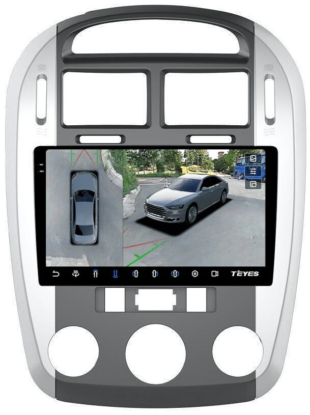 Магнитола для KIA Cerato 1 2004-2008 (кондиционер, аварийка внизу) - Teyes CC3-2K-360 на Android 10, 2K QLED, 6Гб+128Гб, CarPlay, 4G SIM-слот, 4 камеры в комплекте