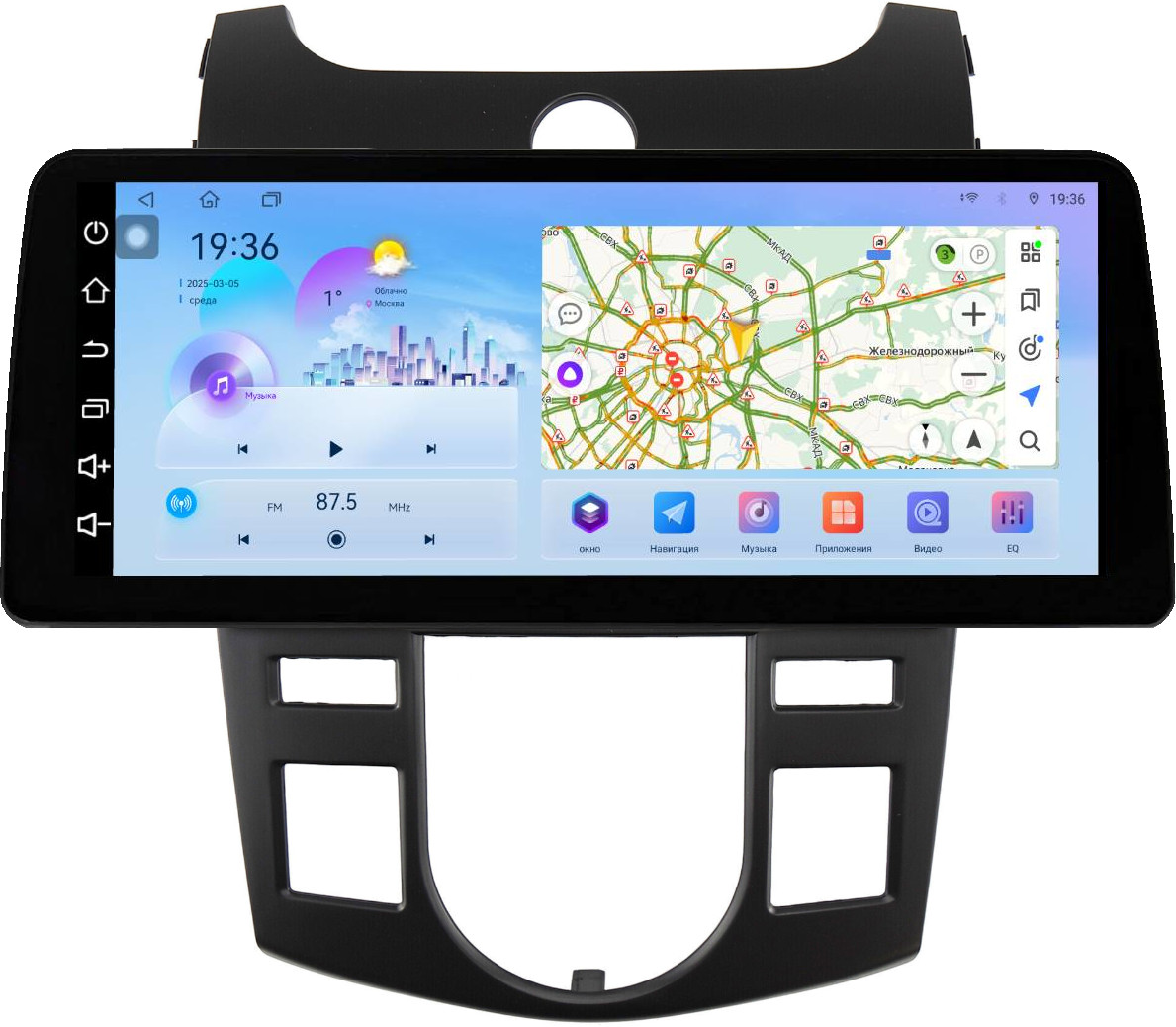 Магнитола для KIA Cerato 2 2008-2013 (климат, рамка черная) - FarCar монитор 12.3" 2K QLED на Android 14, TS10, CarPlay, 4G SIM-слот