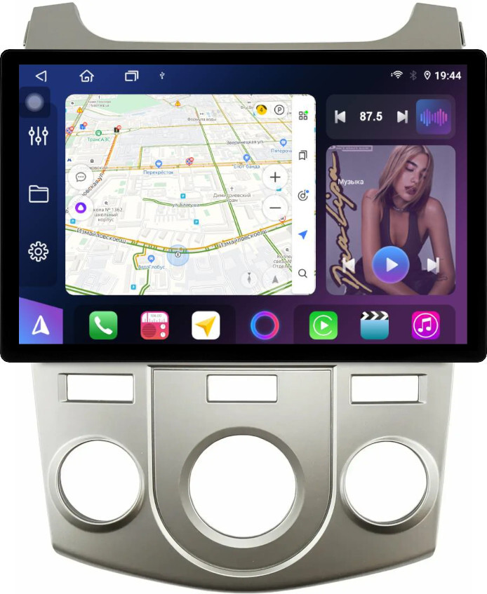 Магнитола для KIA Cerato 2 2008-2013 (кондиционер, рамка серебро) - FarCar BX877 монитор 13" 2K QLED на Android 13, TS10, 6+128, CarPlay, 4G SIM-слот