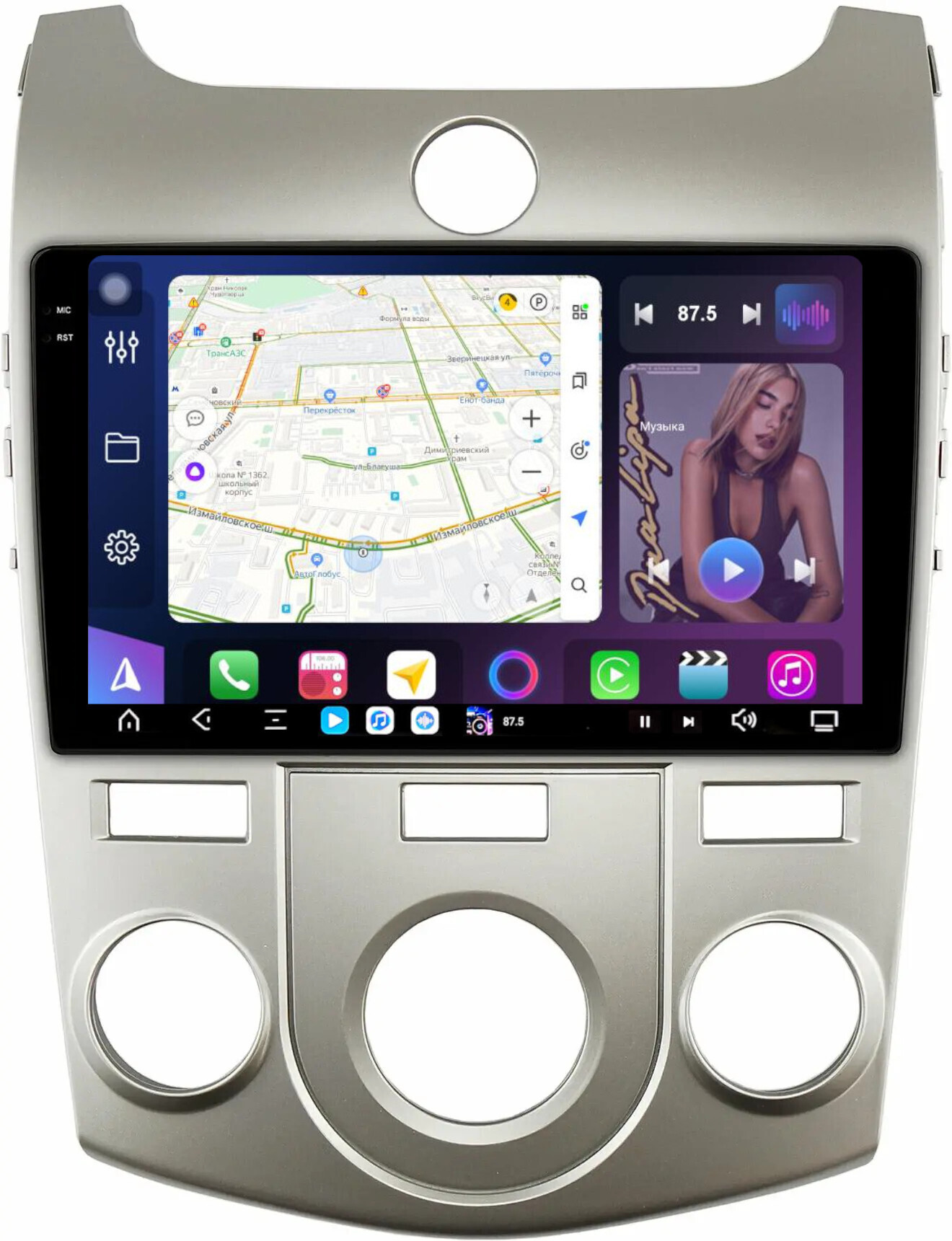 Магнитола для KIA Cerato 2 2008-2013 (кондиционер, рамка серебро) - FarCar GX9-7093CNS монитор 9.5" 2K QLED на Android 14, TS20, 6+128Гб, CarPlay, 4G SIM-слот