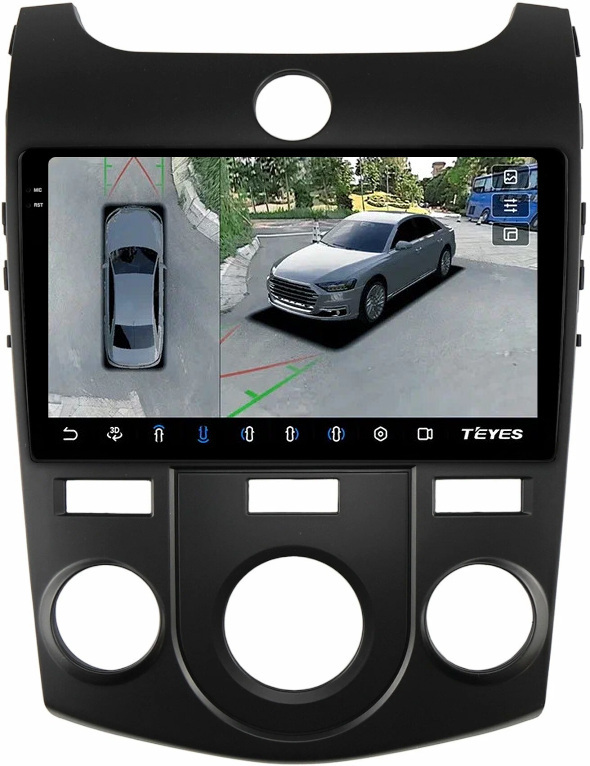 Магнитола для KIA Cerato 2 2008-2013 (кондиционер, рамка черная) - Teyes CC3-2K-360 на Android 10, 2K QLED, 6Гб+128Гб, CarPlay, 4G SIM-слот, 4 камеры в комплекте