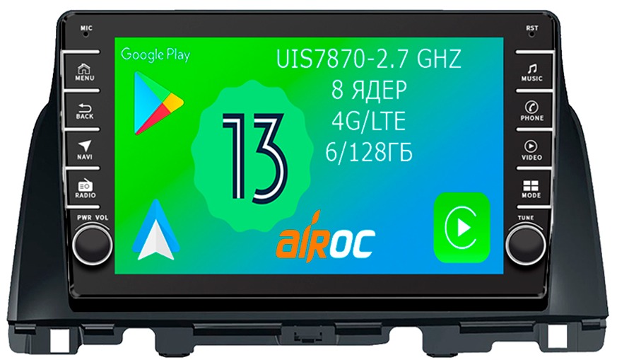Емкостный мультитач - это современный цифровой дисплей, которым легко можно управлять несколькими пальцами, масштабируя карты и картинки. Тип матрицы –QLED, Разрешение экрана: 1280*720. К тому же дисплеи на магнитолах Airoc хорошо зарекомендовали себя в условиях суровых Российских морозов.