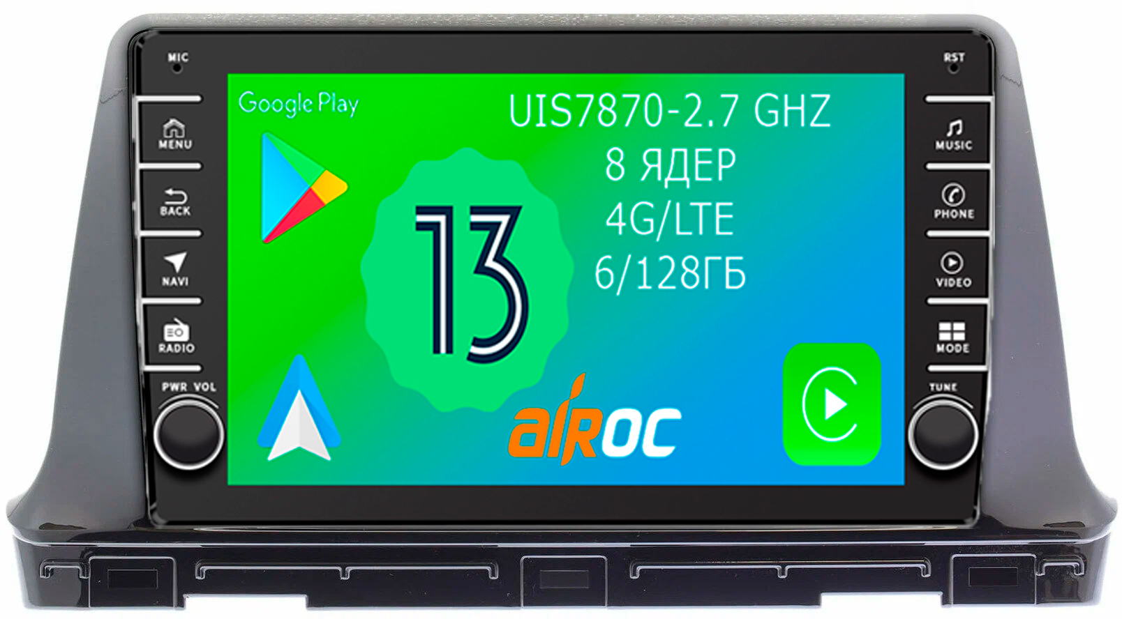 Емкостный мультитач - это современный цифровой дисплей, которым легко можно управлять несколькими пальцами, масштабируя карты и картинки. Тип матрицы –QLED, Разрешение экрана: 1280*720. К тому же дисплеи на магнитолах Airoc хорошо зарекомендовали себя в условиях суровых Российских морозов.