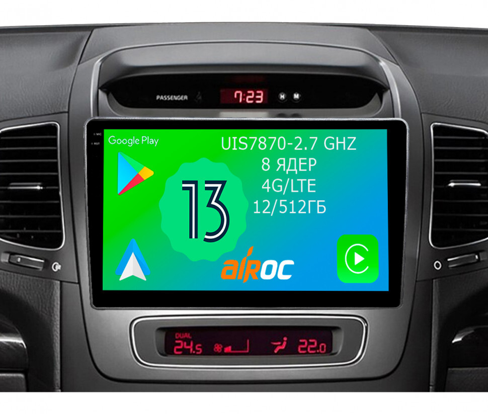 Магнитола для KIA Sorento 2 XM 2012-2020 с экраном климата снизу (рамка накладка) - Airoc 2K AU-2301 на Android 13, TS20, 12/512Гб, SIM-слот