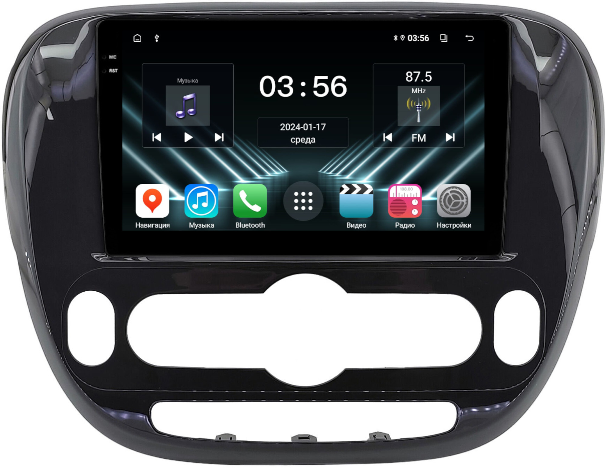 Магнитола для KIA Soul 2 2014-2019 (климат, рамка глянцевая) - FarCar DX526M монитор 9.5" IPS на Android 13, 4+64Гб, CarPlay
