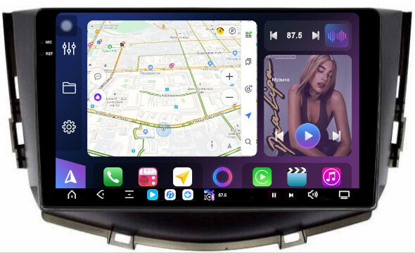 Магнитола для Lifan X60 2012-2016 - FarCar GX198M монитор 9.5" 2K QLED на Android 14, TS20, 6+128Гб, CarPlay, 4G SIM-слот
