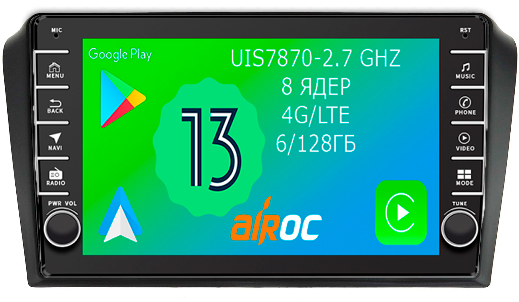 Емкостный мультитач - это современный цифровой дисплей, которым легко можно управлять несколькими пальцами, масштабируя карты и картинки. Тип матрицы – QLED, Разрешение экрана: 1280*720. К тому же дисплеи на магнитолах Airoc хорошо зарекомендовали себя в условиях суровых Российских морозов.