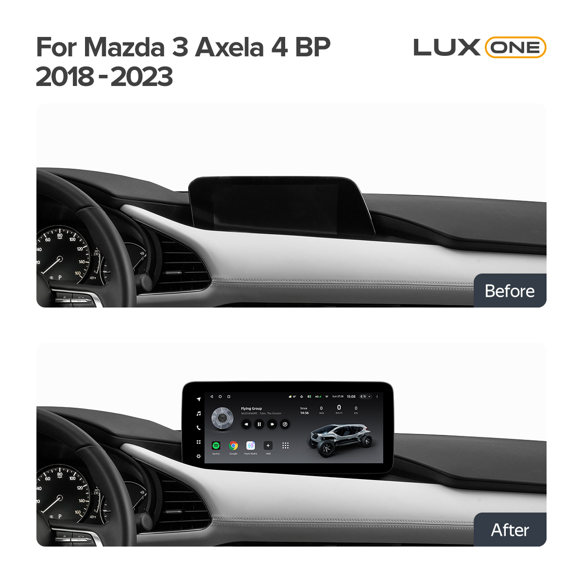 Магнитола для Mazda 3 BP 2019-2023 (ШГУ с монитором) - Teyes LUX ONE ROUND монитор 12.3", Android 10, ТОП процессор, CarPlay, 4G SIM-слот
