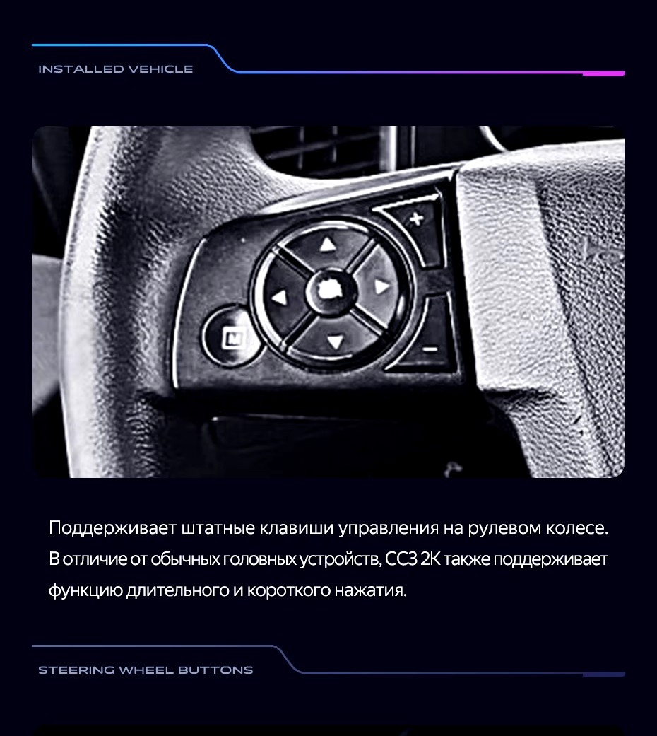 Поддерживаются: кнопки мульти-руля, автоматическое включение и выключение от сигнала зажигания (ACC), и многие другие штатные фукнции оригинальной магнитолы - уточняйте