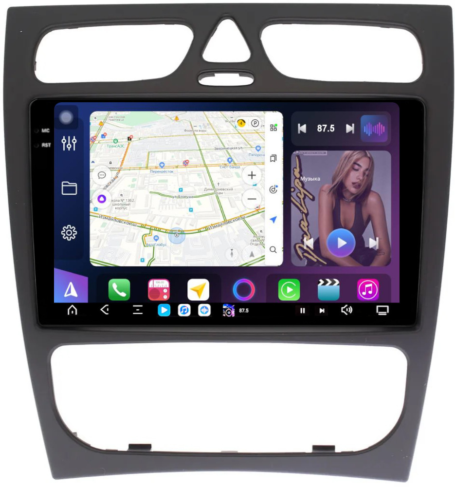 Магнитола для Mercedes-Benz G W463 2000-2006, C-класс W203 2000-2004 (рамка большая) - FarCar GX1264M монитор 9.5" 2K QLED на Android 14, TS20, 6+128Гб, CarPlay, 4G SIM-слот