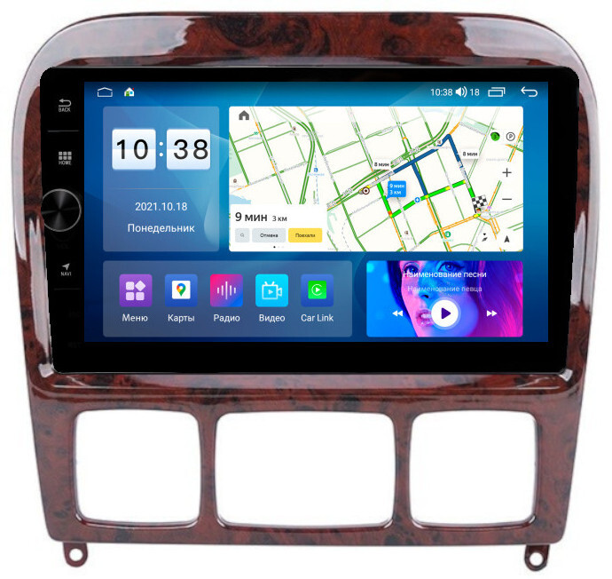 Магнитола для Mercedes-Benz S (W220) 1998-2005 (рамка под дерево) - Parafar PF211T2LHDAV на Android 12, ТОП процессор, 3Гб+32Гб, CarPlay, 4G SIM-слот