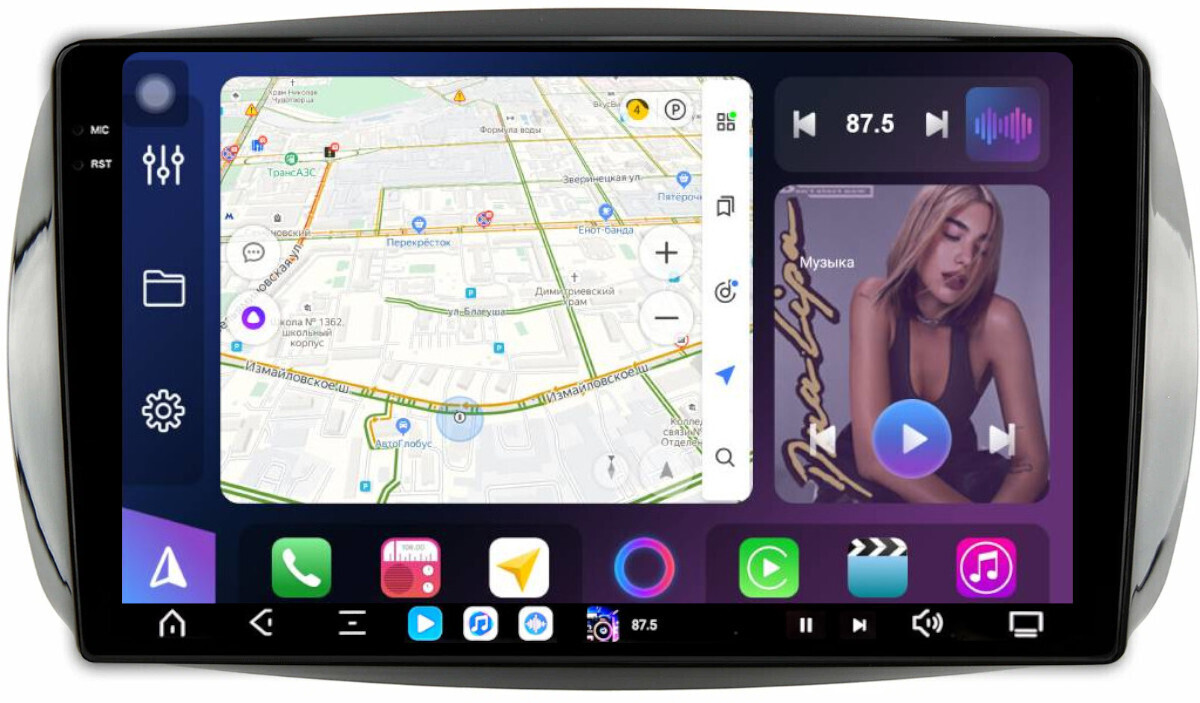 Магнитола для Mercedes-Benz Smart ForTwo/ForFour W453 2014-2023 - FarCar GX9-9628 монитор 9.5" 2K QLED на Android 14, TS20, 6+128Гб, CarPlay, 4G SIM-слот
