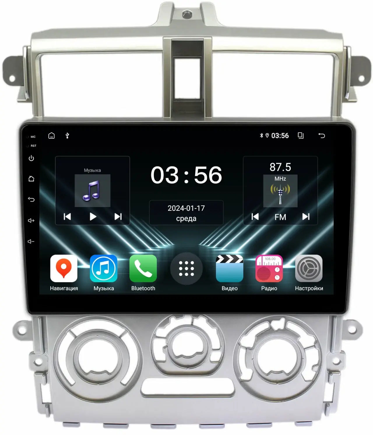 Магнитола для Mitsubishi Colt 6 2002-2012, Colt Plus (правый руль, рамка серебро) - FarCar DX9-9626F2S монитор 9" IPS на Android 13, 4+64Гб, CarPlay
