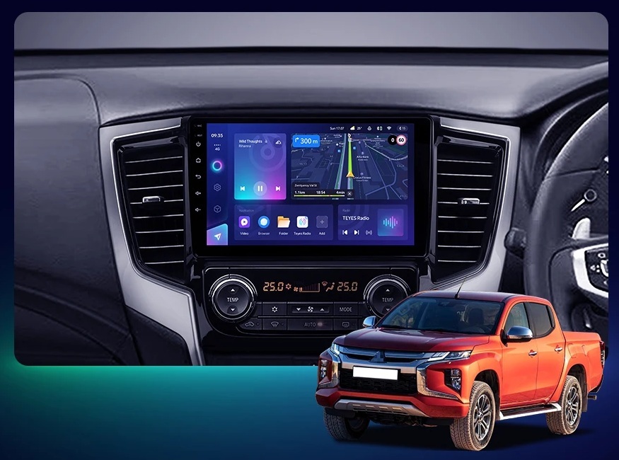 Магнитола для Mitsubishi L200 2019-2024 (правый руль, климат) - Kuberg QLed, Android 13, TS20, CarPlay, SIM-слот