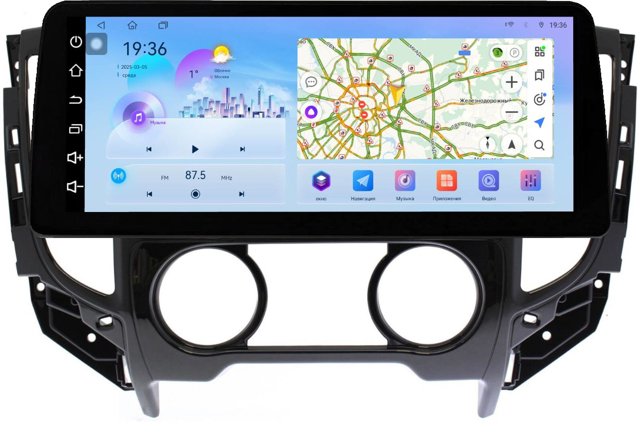 Магнитола для Mitsubishi L200 5 2015-2024 (кондиционер), FIAT Fullback - FarCar монитор 12.3" 2K QLED на Android 14, TS10, CarPlay, 4G SIM-слот