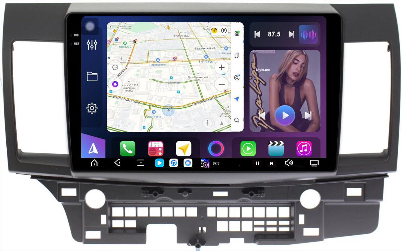 Магнитола для Mitsubishi Lancer X 2007-2016 - FarCar GX037M монитор 10.36" 2K QLED на Android 14, TS20, 6+128Гб, CarPlay, 4G SIM-слот