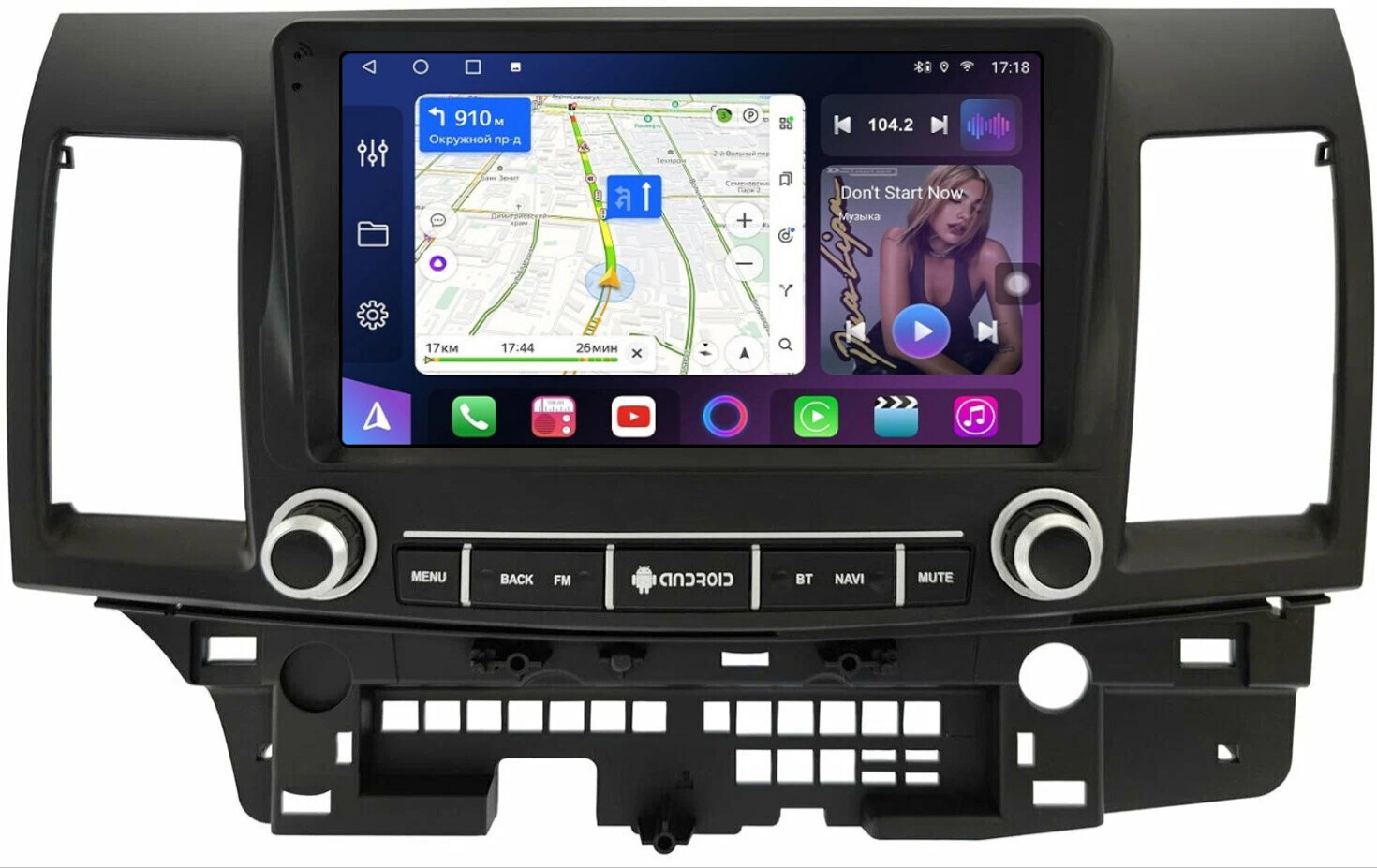 Магнитола для Mitsubishi Lancer X 2007-2016 (рамка с крутилками и кнопками) - FarCar XXL9-7204-9K монитор 9.5" 2K QLED на Android 14, TS20, 8+256Гб, CarPlay, 4G SIM-слот