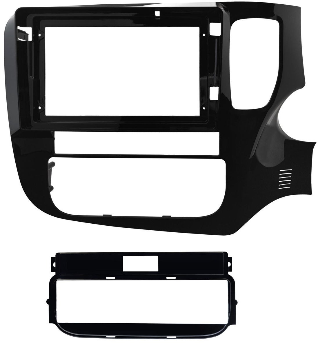 В комплекте идёт проводка с CAN-адаптером, полностью поддерживающая штатную камеру заднего вида и заводской круговой обзор 360 (4 камеры) с переключением режимов, штатную аудио-систему Rockford Fosgate, а так же отображает двухзонный климат контроль и открывание дверей. Динамические линии парковки будут отображаться только на Outlander 2015+ годов выпуска.