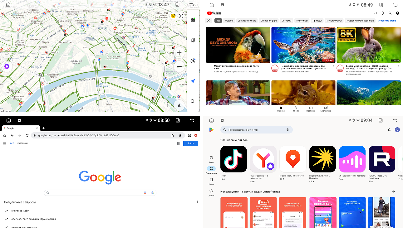 Интерфейс Android 13 разработан специально для использования в автомобиле, на Русском языке. Пользоваться навигацией и устанавливать приложения с Google Play Market так же просто, как и на обычном смартфоне или планшете