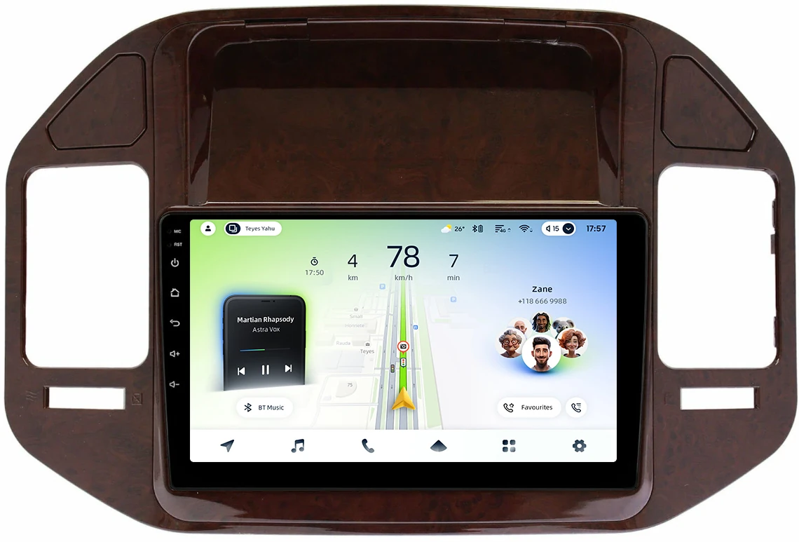Магнитола для Mitsubishi Pajero 3, Montero 3 1999-2006 (рамка дерево) - Teyes CC4L монитор 9" IPS на Android 14, Snapdragon 662, CarPlay, 4G SIM-слот
