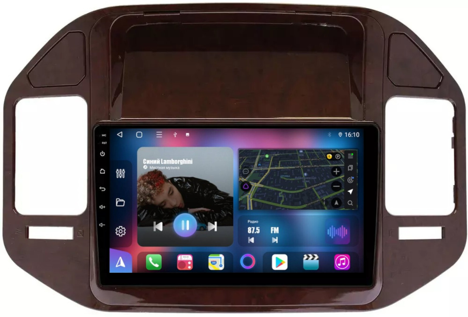 Магнитола для Mitsubishi Pajero 3, Montero 3 1999-2006 (рамка под дерево) - FarCar BM7007-3WM на Android 13, QLED, TS10, 4Гб+32Гб, CarPlay, 4G SIM-слот