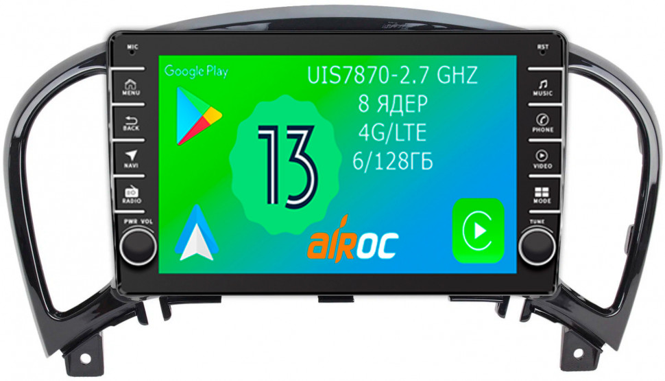 Магнитола для Nissan Juke 2011-2019 - Airoc AB-1210 (кнопки и крутилки), Android 13, TS20, 6/128Гб, SIM-слот, CarPlay