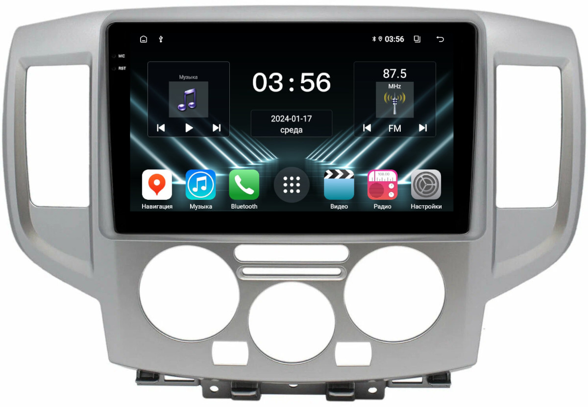 Магнитола для Nissan NV200 2009+ (рамка серебро) - FarCar DX9-9677 монитор 9.5" IPS на Android 13, 4+64Гб, CarPlay