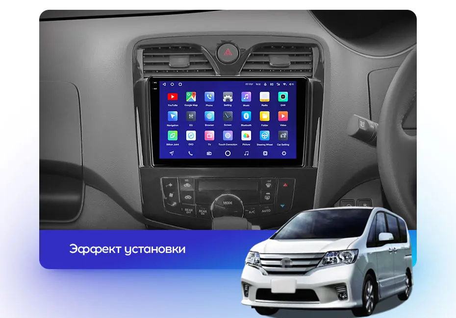 Магнитола для Nissan Serena C26 2010-2016 - FarCar 9572 монитор 9.5" QLED на Android 14, TS18, CarPlay, 4G SIM-слот