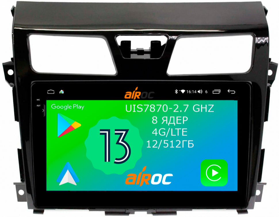 Магнитола для Nissan Teana 2014-2016 (L33) (поддержка кругового обзора) - Airoc 2K AU-1203 Android 13, TS20, 12/512Гб, SIM-слот