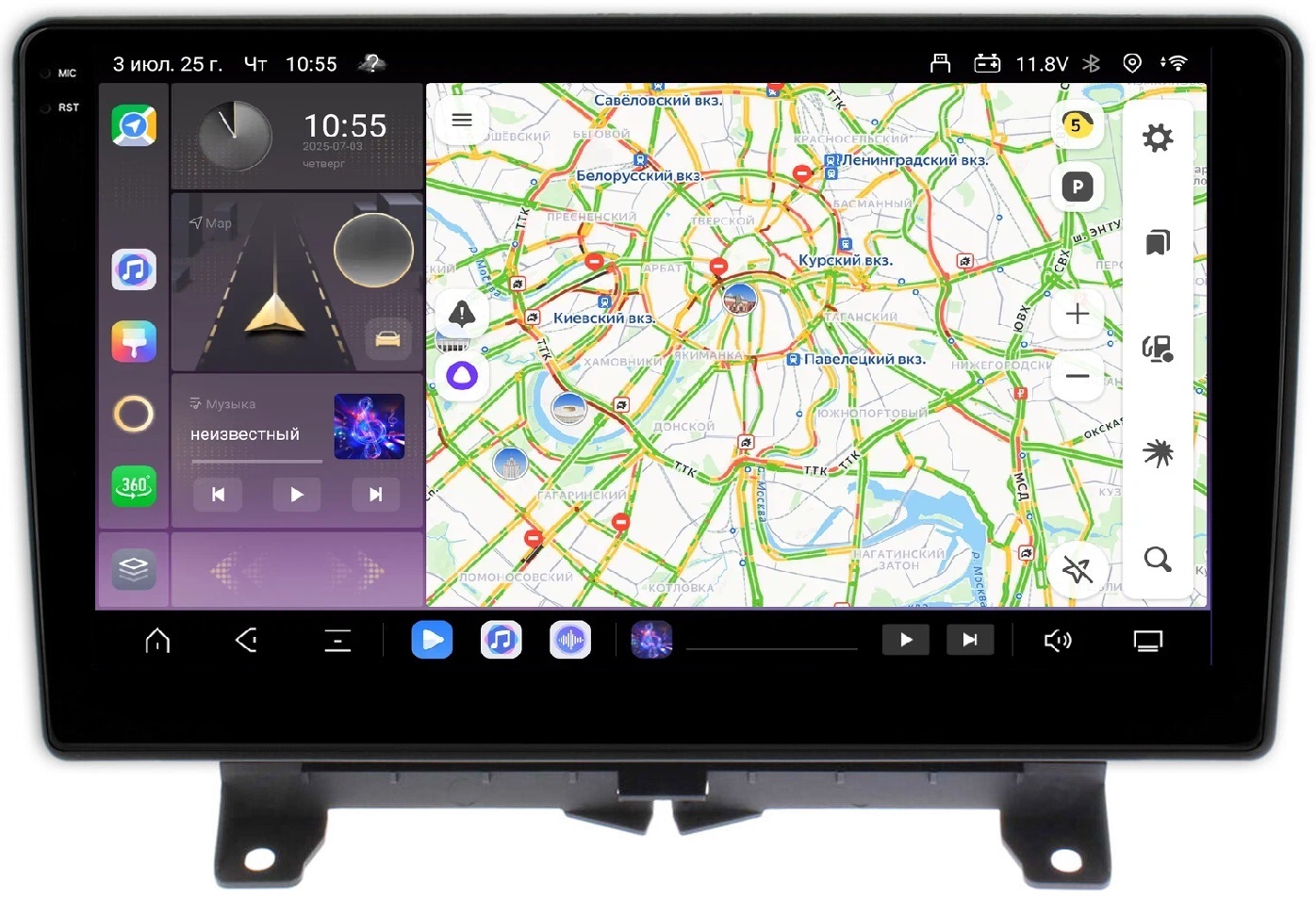 Поддержка навигации с пробками, голосовым набором маршрута и онлайн обновляемыми картами. С Google Play Market можно легко установить: Яндекс Навигатор (бесплатно), карты Google (бесплатно), Навител, Ситигид, Прогород и др. Возможность работы в фоновом режиме нескольких навигационных программ и музыки/видео одновременно!