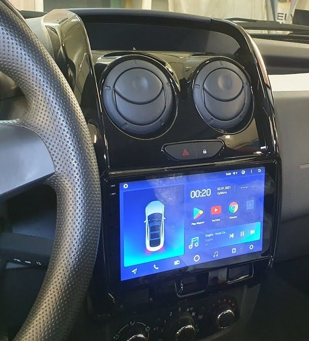 Магнитола для Renault Duster 1 2015-2020, Lada Largus 2021+ (без мультируля, рамка большая глянец) - FarCar GX9-7088A монитор 9.5" 2K QLED на Android 14, TS20, 6+128Гб, CarPlay, 4G SIM-слот