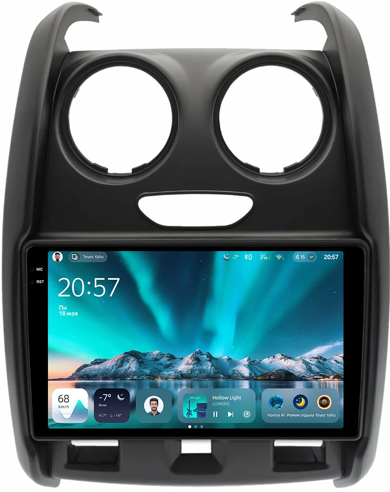 Магнитола для Renault Duster 1 2015-2020, Lada Largus 2021+ (без мультируля, рамка большая матовая) - Teyes CC4 монитор 9.2" 2K QLED на Android 14, Snapdragon 680, DSP, CarPlay, 4G SIM-слот