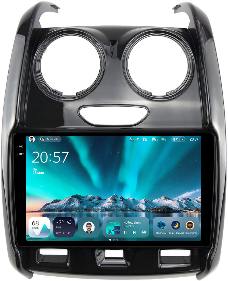 Магнитола для Renault Duster 1 2015-2020, Lada Largus 2021+ (мультируль/джойстик, рамка большая глянец) - Teyes CC4 монитор 9.2" 2K QLED на Android 14, Snapdragon 680, DSP, CarPlay, 4G SIM-слот
