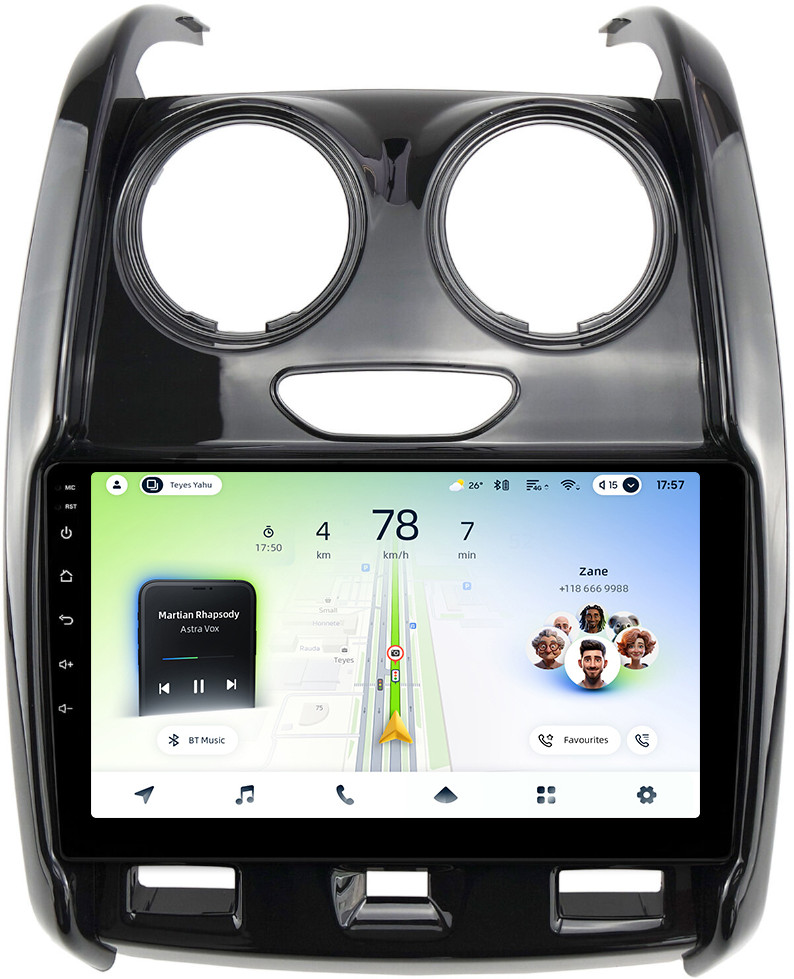 Магнитола для Renault Duster 1 2015-2020, Lada Largus 2021+ (мультируль/джойстик, рамка большая глянец) - Teyes CC4L монитор 9" IPS на Android 14, Snapdragon 662, CarPlay, 4G SIM-слот