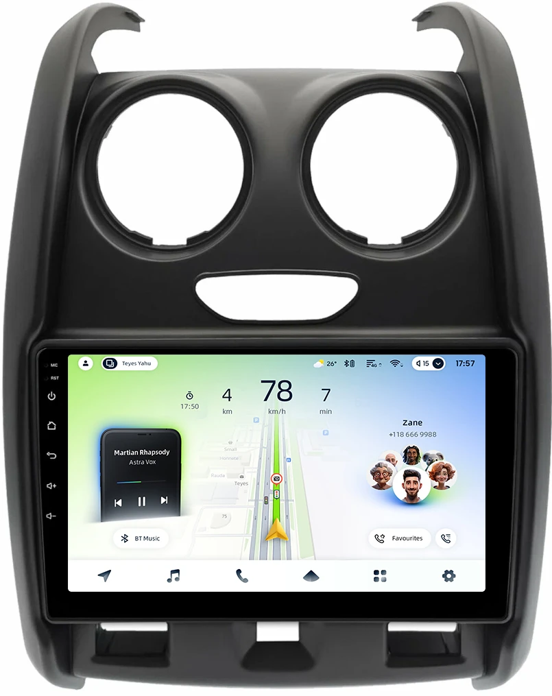 Магнитола для Renault Duster 1 2015-2020, Lada Largus 2021+ (мультируль/джойстик, рамка большая матовая) - Teyes CC4L монитор 9" IPS на Android 14, Snapdragon 662, CarPlay, 4G SIM-слот
