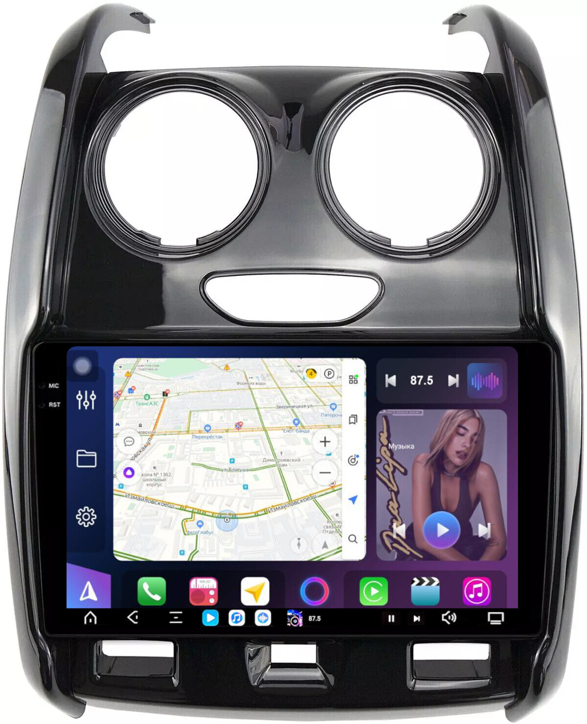 Магнитола для Renault Duster 1 2015-2020, Lada Largus 2021+ (подрулевой джойстик) - FarCar GX3008M монитор 9.5" 2K QLED на Android 14, TS20, 6+128Гб, CarPlay, 4G SIM-слот