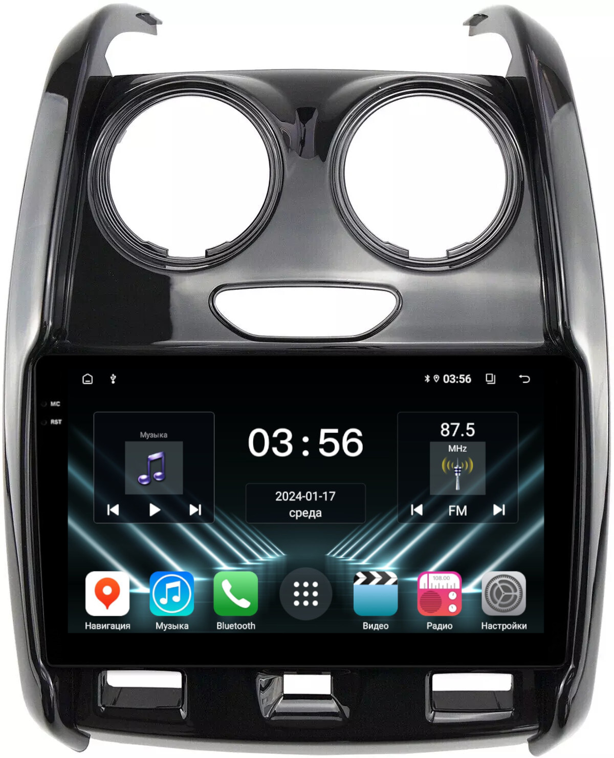 Магнитола для Renault Duster 1 2015-2020, Lada Largus 2021+ (мультируль/джойстик, рамка большая глянец) - FarCar DX3008M монитор 9.5" IPS на Android 13, 4+64Гб, CarPlay