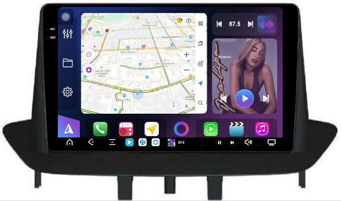 Магнитола для Renault Fluence, Megane 2009-2017 - FarCar GX145M монитор 9.5" 2K QLED на Android 14, TS20, 6+128Гб, CarPlay, 4G SIM-слот