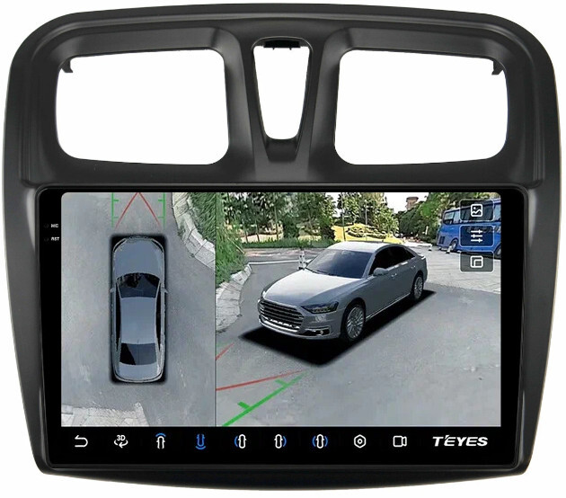 Магнитола для Renault Logan 2, Sandero 2 2014+ (рамка 10) - Teyes CC3-2K-360 на Android 10, 2K QLED, 6Гб+128Гб, CarPlay, 4G SIM-слот, 4 камеры в комплекте