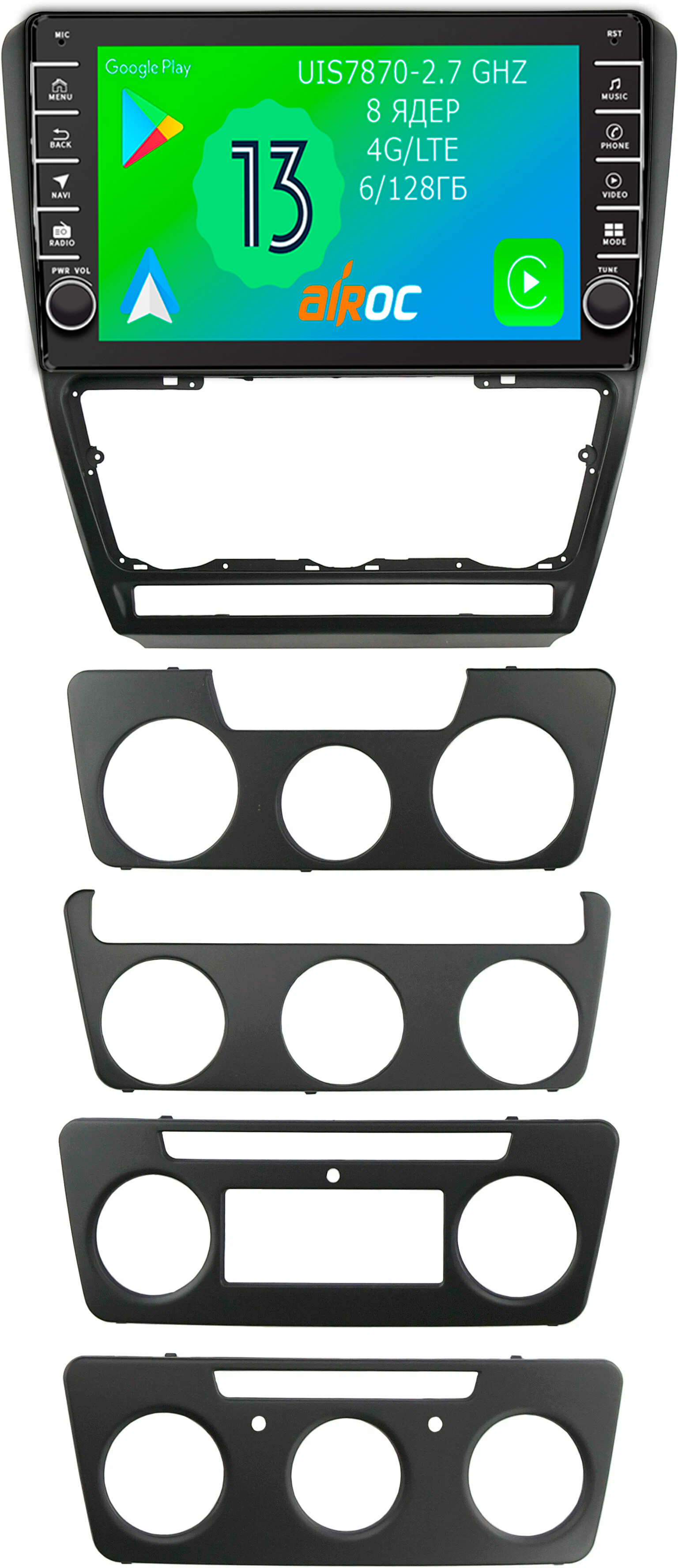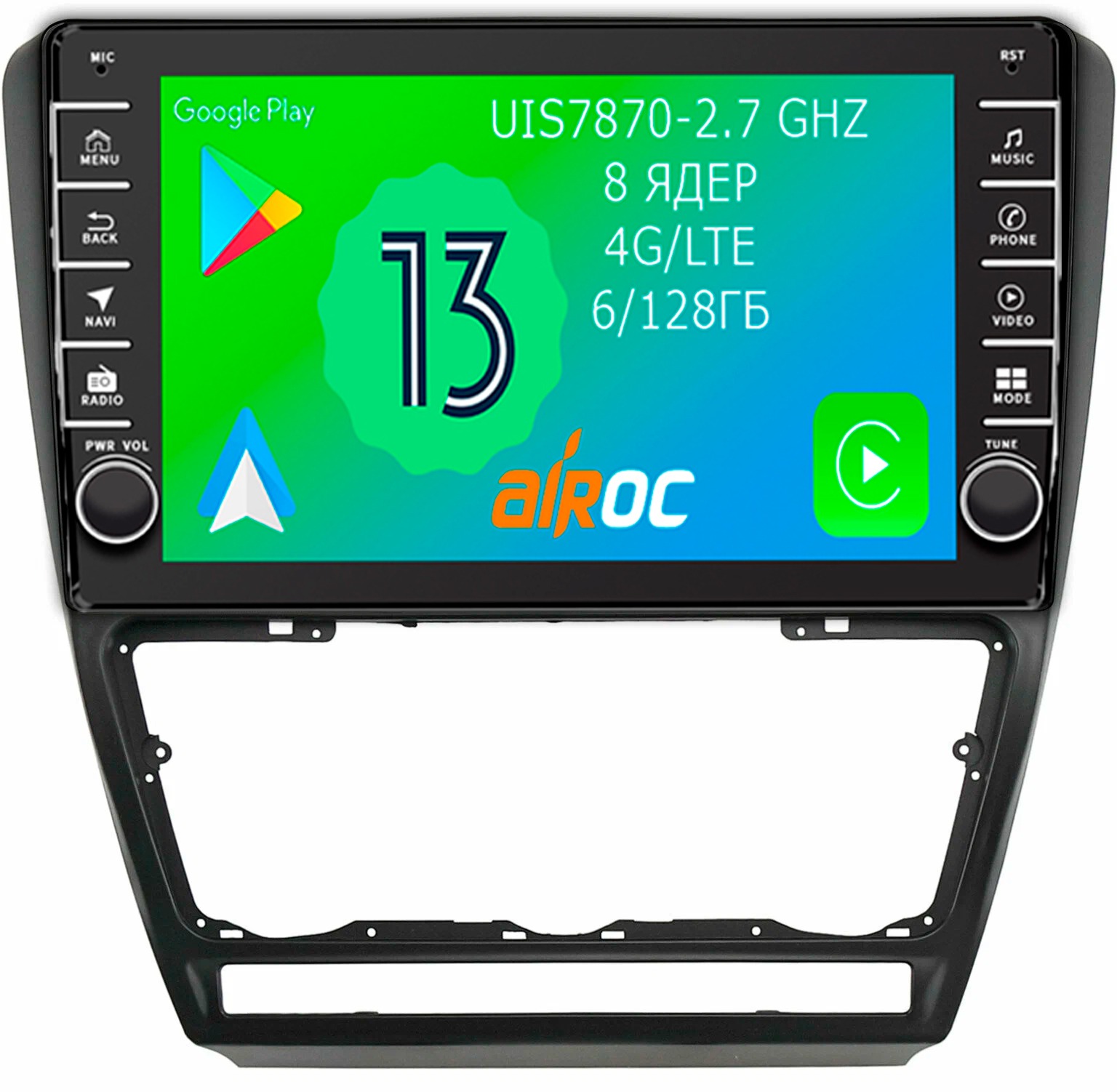 Магнитола для Skoda Octavia A5 2004-2013 - Airoc AB-3202B (черная, кнопки и крутилки), Android 13, TS20, 6/128Гб, SIM-слот, CarPlay