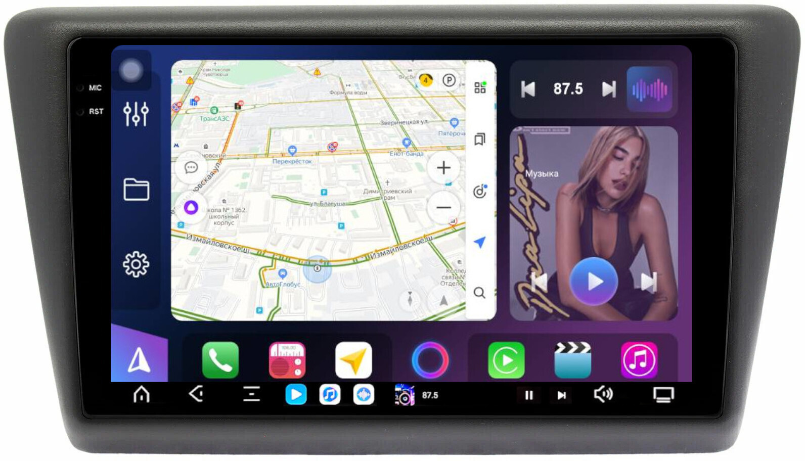 Магнитола для Skoda Rapid 1 2012-2020 (рамка тип 2) - FarCar GX3043M монитор 9.5" 2K QLED на Android 14, TS20, 6+128Гб, CarPlay, 4G SIM-слот