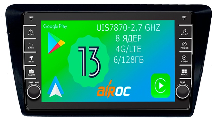 Магнитола для Skoda Rapid 2012-2020 - Airoc AB-3207 (кнопки и крутилки), Android 13, TS20, 6/128Гб, SIM-слот, CarPlay