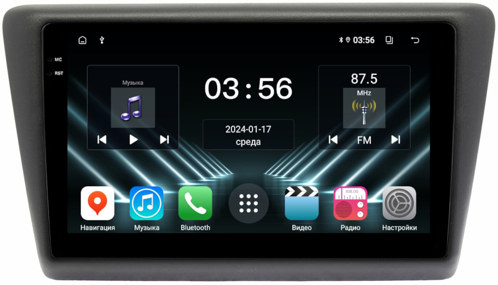 Магнитола для Skoda Rapid 1 2012-2020 (рамка тип 2) - FarCar DX3043M монитор 9.5" IPS на Android 13, 4+64Гб, CarPlay