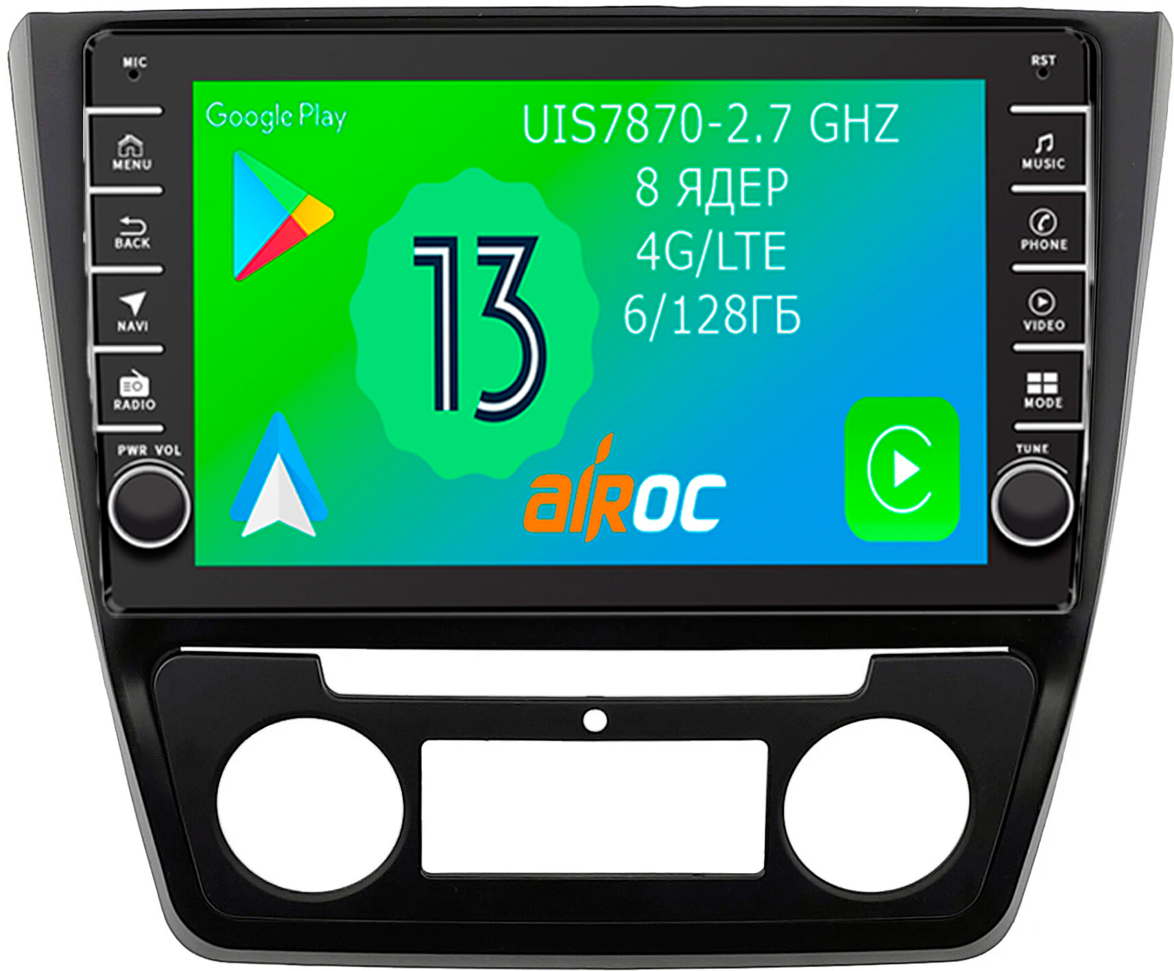 Магнитола для Skoda Yeti 2009-2018 (кондиционер) - Airoc AB-3204 (кнопки и крутилки), Android 13, TS20, 6/128Гб, SIM-слот, CarPlay