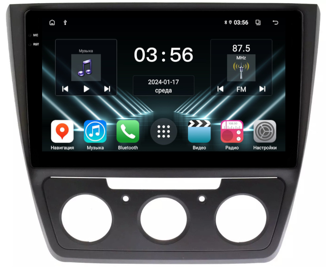 Магнитола для Skoda Yeti 2009-2018 (кондиционер) - FarCar DX1225M монитор 10.36" IPS на Android 13, 4+64Гб, CarPlay