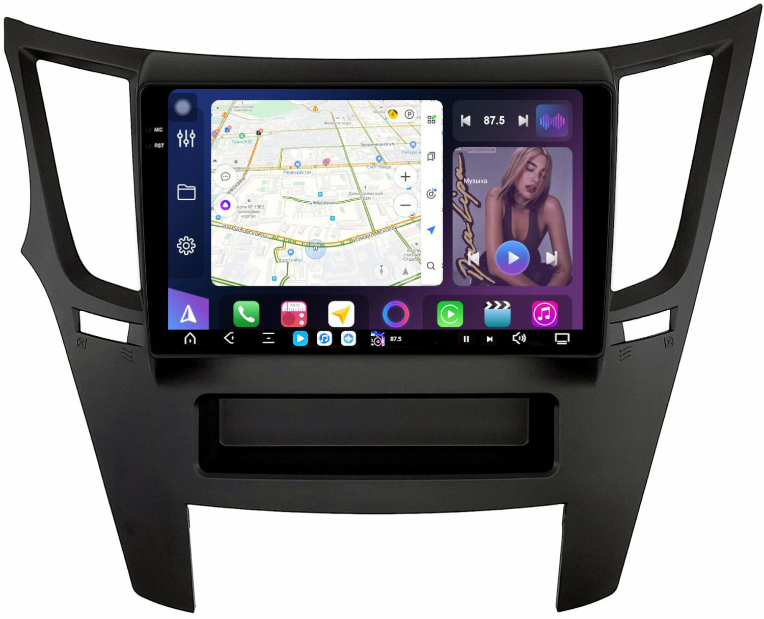 Магнитола для Subaru Legacy 5, Outback 4 2009-2014 (левый руль, рамка черная) - FarCar GX061M монитор 9.5" 2K QLED на Android 14, TS20, 6+128Гб, CarPlay, 4G SIM-слот
