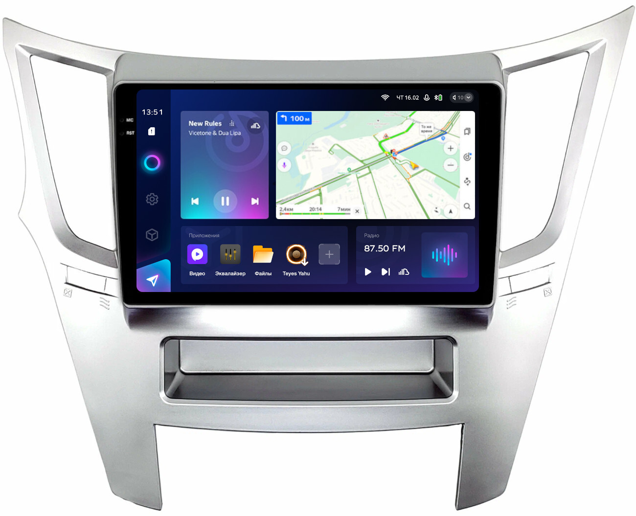 Магнитола для Subaru Legacy 5, Outback 4 2009-2014 (левый руль, рамка серебро) - Teyes CC3-2K монитор 9.5" 2K QLED на Android 10, ТОП процессор, CarPlay, 4G SIM-слот
