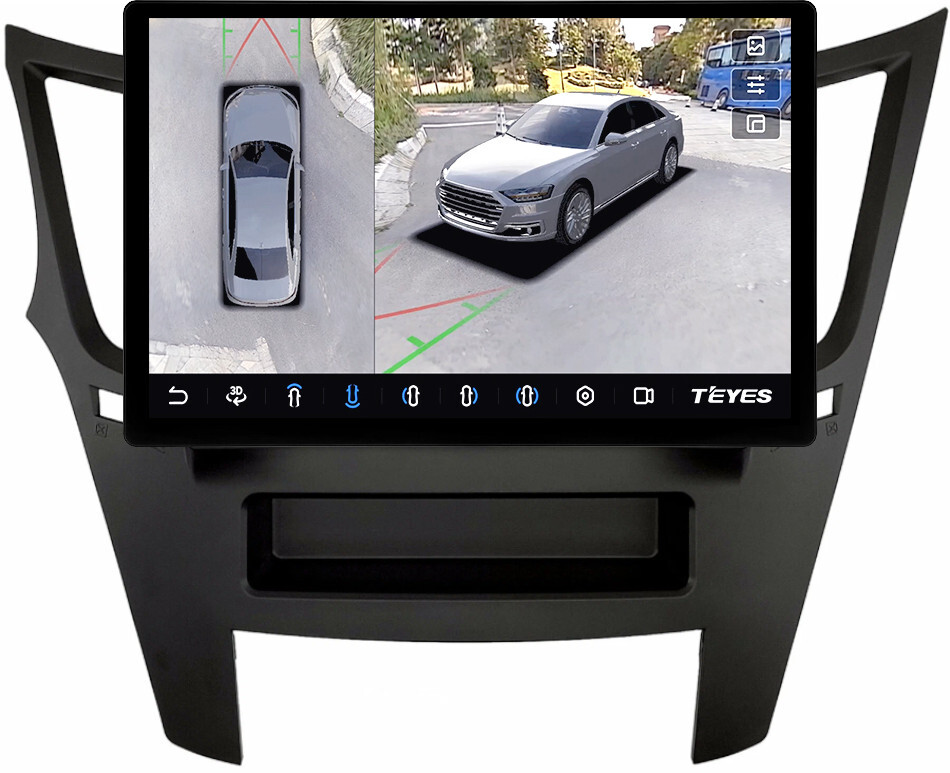 Магнитола для Subaru Legacy 5, Outback 4 2009-2014 (левый руль, рамка черная) - Teyes CC3-2K-360 монитор 13" 2K QLED на Android 10, 6+128Гб, CarPlay, 4G SIM-слот, 4 камеры в комплекте