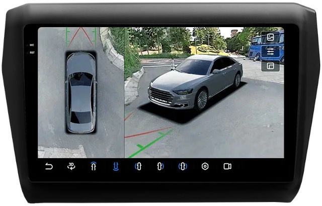 Магнитола для Suzuki Swift 5 2016-2023 (рамка матовая) - FarCar BX179-2M-360 монитор 9.5" 2K QLED на Android 13, 6Гб+128Гб, CarPlay, 4G SIM-слот, 4 камеры в комплекте